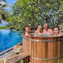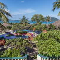 Located on a hillside, with views overlooking four bays, mountains, and surrounding islands, the Ayurveda Spa is a wonderful hideaway. Each villa has a relaxing atmosphere, outside garden bathrooms with rain showers, private whirlpools, and terraces. The on-site amenities include a large pool with sea views, open 24 hours. You can pamper yourself with the many spa treatments on offer, and enjoy Eastern and Western cuisine at the on-site restaurant. Or take a free shuttle bus and venture to Nai Harn Beach in the national park, one of Phuket's most popular beaches. Please note that this is an adults-only resort.